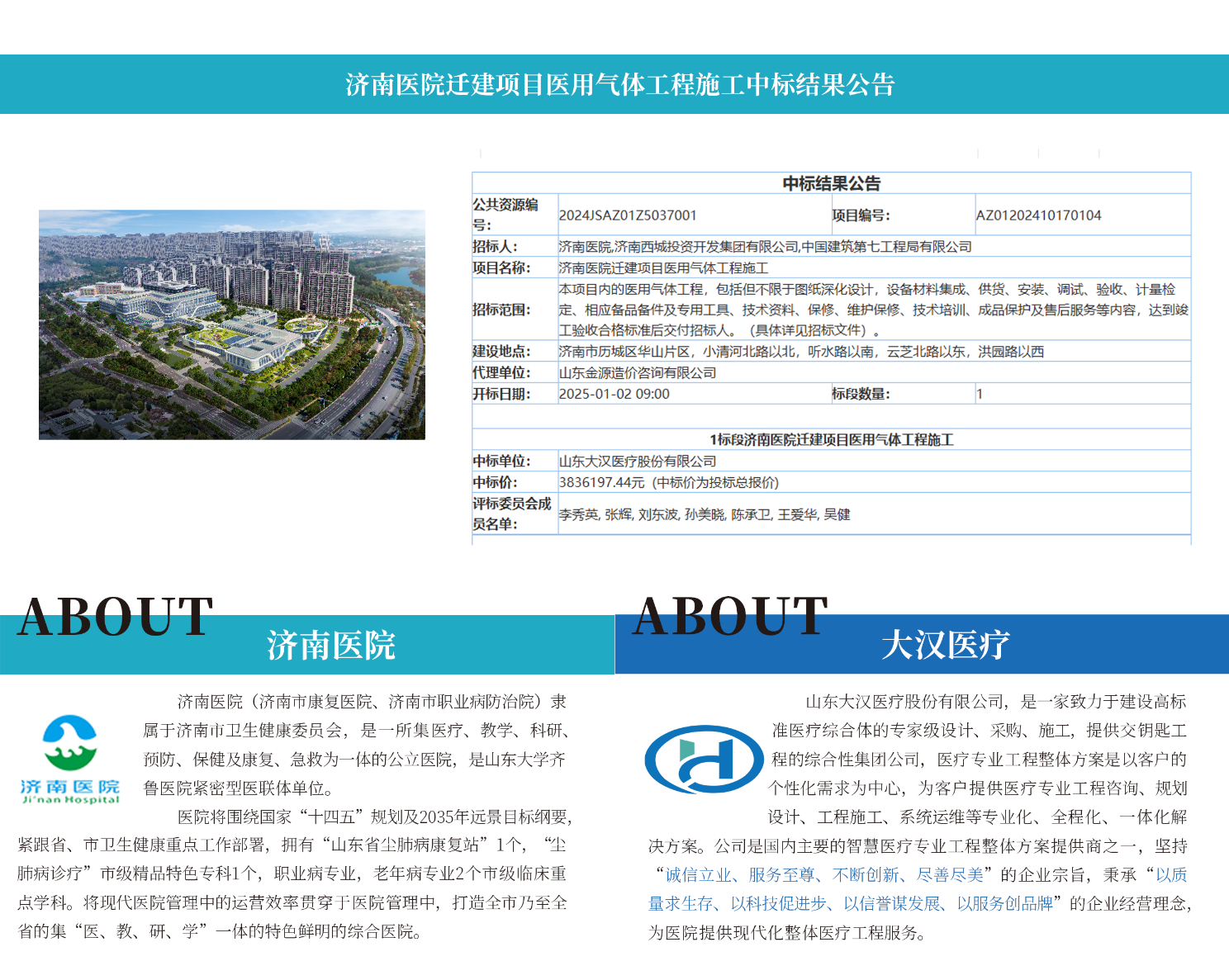 山东大汉医疗股份有限公司,是一家致力于建设高标准医疗综合体的专家级设计、采购、施工,提供交钥匙工程的综合性集团公司,集医用洁净工程系统、医用中心供气系统、医用射线防护、屏蔽工程于一体的国家级高新技术企业。