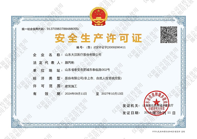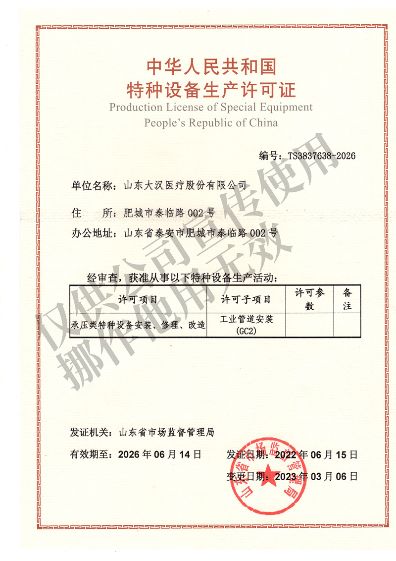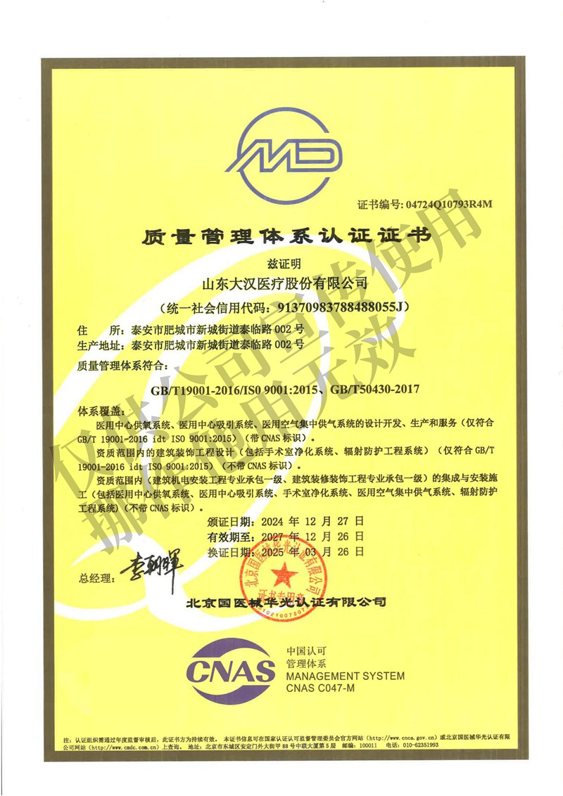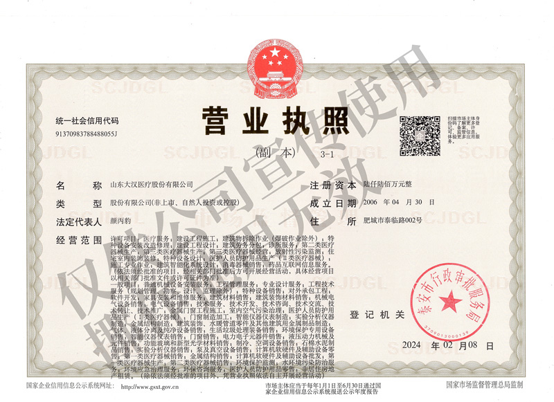 山东大汉医疗股份有限公司,是一家致力于建设高标准医疗综合体的专家级设计、采购、施工,提供交钥匙工程的综合性集团公司,集医用洁净工程系统、医用中心供气系统、医用射线防护、屏蔽工程于一体的国家级高新技术企业。